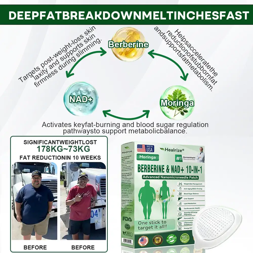 Healrizeยฎ Moringaยท Berberine x NAD+ 10-in-1 Advanced Nano Microneedle Patch: 98% Absorption Rate, Transforming Weight, Liver, Gut & Skin Health