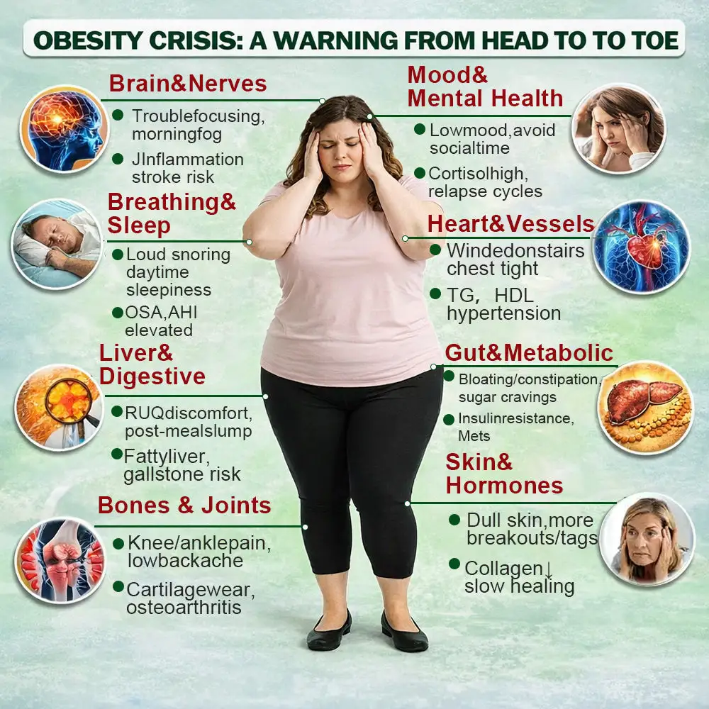 โ ย Additional Benefits: This liquid can address multiple obesity-related complications, such as cardiovascular disease, type 2 diabetes, arthritis, high obesity/hypertension, fatty liver, liver function recovery, brain fog and memory decline, as well as women’s health issues including hormonal imbalances, menopause-related symptoms, and vaginal problems such as itching and odor.