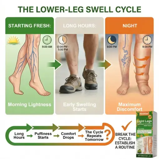 Healrize® Light Legs Swelling & Circulation Relief Spray is a fast-drying daily mist made for legs that feel heavy, tight, puffy, or overworked after long hours of standing, sitting, walking, or nonstop movement.