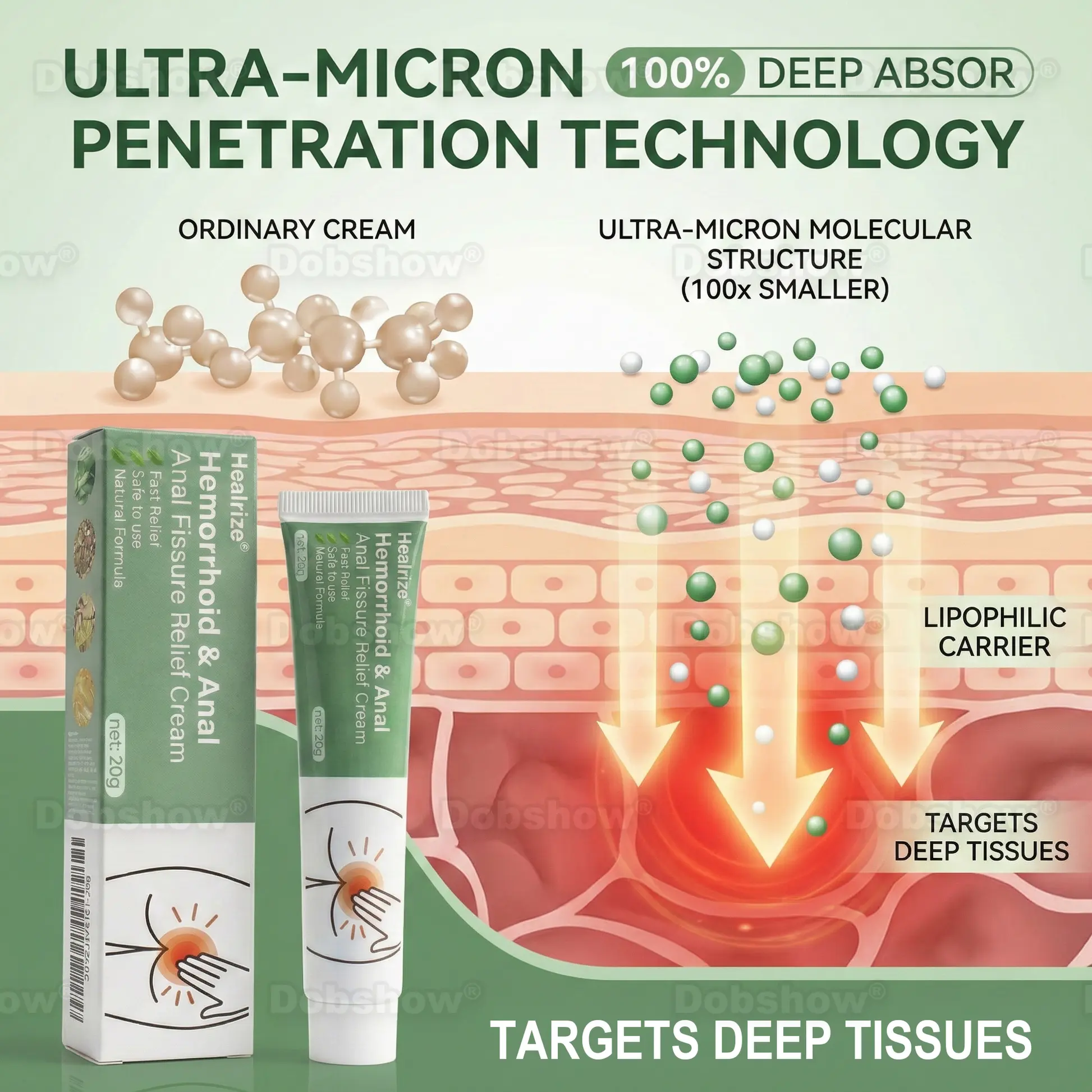 Healrize is a breakthrough hemorrhoid and anal fissure treatment, powered by pharmaceutical-grade ingredients and Ultra-Micron Penetration Technology. Doctor-recommended and clinically proven, it outperforms symptom-masking alternatives with an innovative 4-stage healing mechanism. Boasting 100% deeper penetration than standard creams, it targets the root of pain, swelling, and inflammation for fast, lasting relief and immediate comfort, while delivering deep tissue repair to prevent recurrence.
